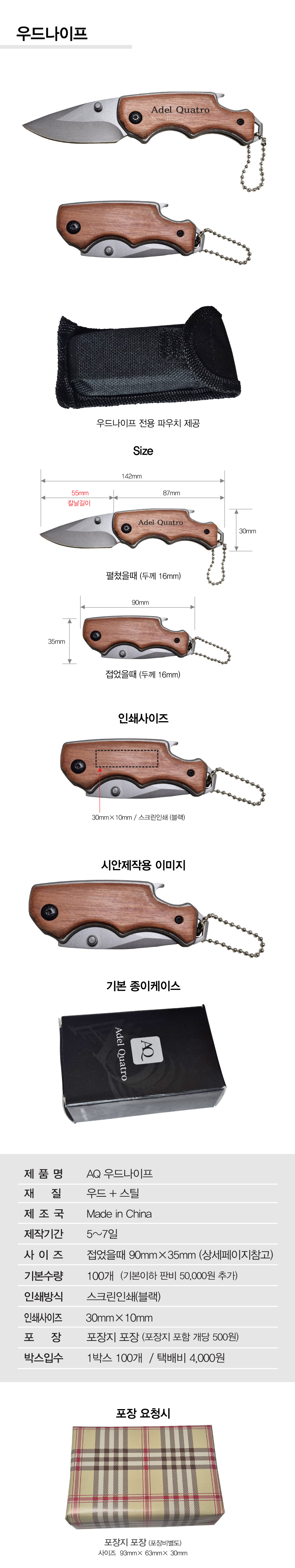 | ±¸¼º | ¿ìµå³ªÀÌÇÁ,ÆÄ¿ìÄ¡ | Á¦Ç°±Ô°Ý | Á¢¾úÀ»¶§ 90mm¡¿35mm, ÆîÃÆÀ»¶§ 142mm¡¿30mm¡¿16mm, Ä®³¯±æÀÌ 55mm |