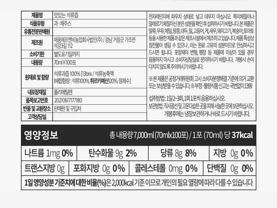 | ±¸¼º | ¸ÀÀÖ´Â ¼®·ùÁó 70ml 100Æ÷ | Á¦Ç°±Ô°Ý | 70ml |