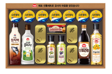 ±¸¼ºÇ° : »ìÄÚ±âÂüÄ¡85g*7, ¿Ã¸®ºêÀ¯500ml*1, ÇØ¹Ù¶ó±âÀ¯500ml*1, Àò½¼ºôŬ·¡½Ä120g*4, Àò½¼ºôŬ·¡½Ä200g*2, ¾çÁ¶°£Àå500ml*1, ¿Ã¸®°í´ç700g*1, °í¼ÒÇÑÂü±â¸§350ml*1, ÅäÆÇ¼Ò±Ý200g*1, °í¼ÒÇÑÂü±â¸§110ml*1